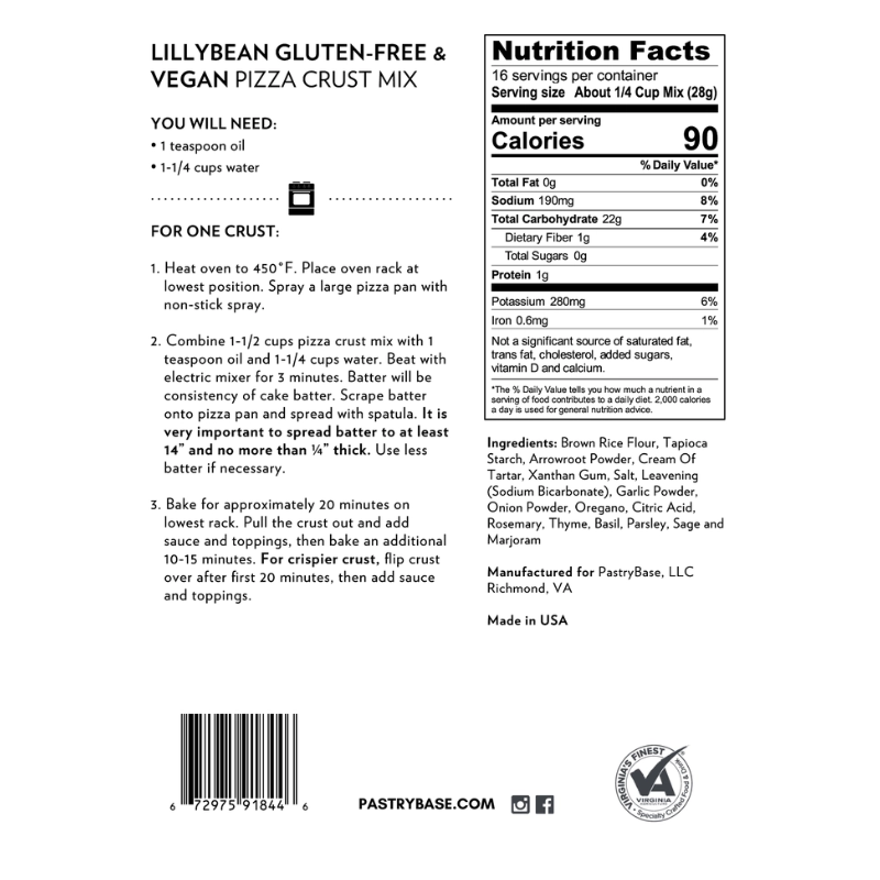 Lillybean Pizza Crust Mix (Vegan and Gluten-Free)