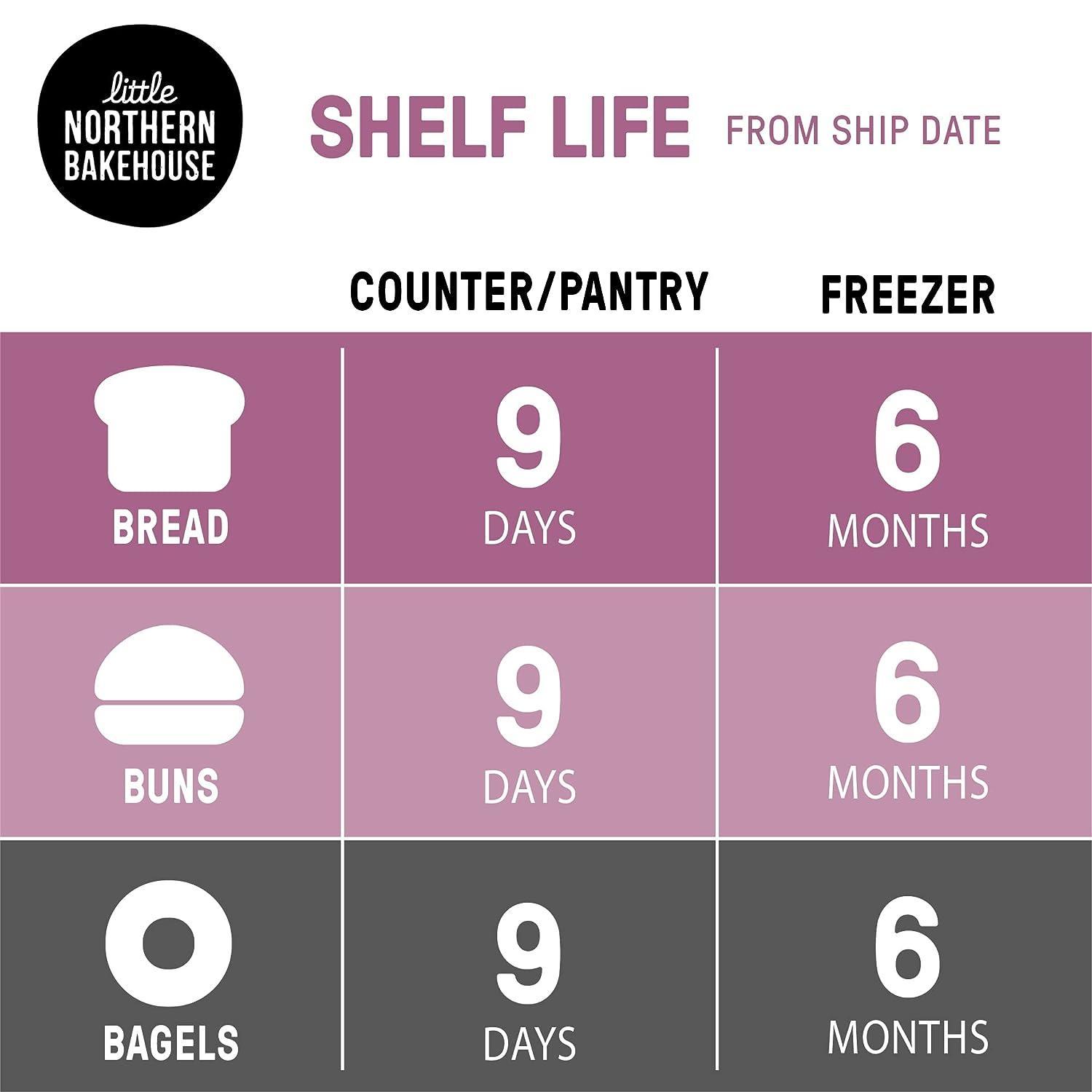 • EASY TO STORE: Our bread is packed from the freezer and thaws on its way to you. It is normal to see a little remaining condensation inside the bread bags. The bread has a 7 day shelf life, so put the loaves you don’t plan on eating soon back in the freezer for up to 6 months.