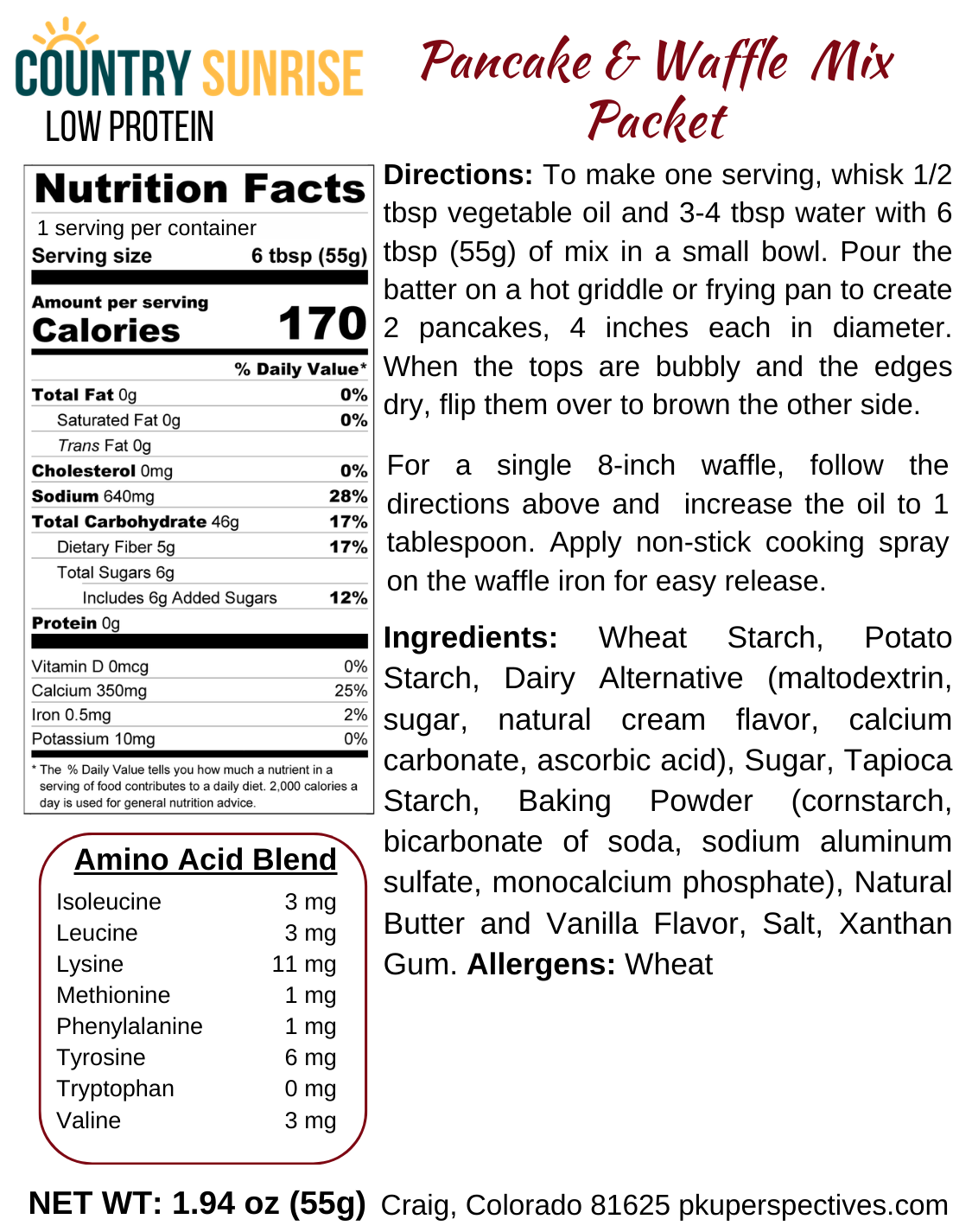 Country Sunrise Pancake & Waffle Mix Packet – 1.94oz