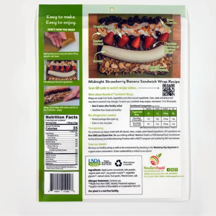 NewGem Apple Kale- 6pk Sandwich WrapsNewGem Apple Kale- 6pk Sandwich Wraps