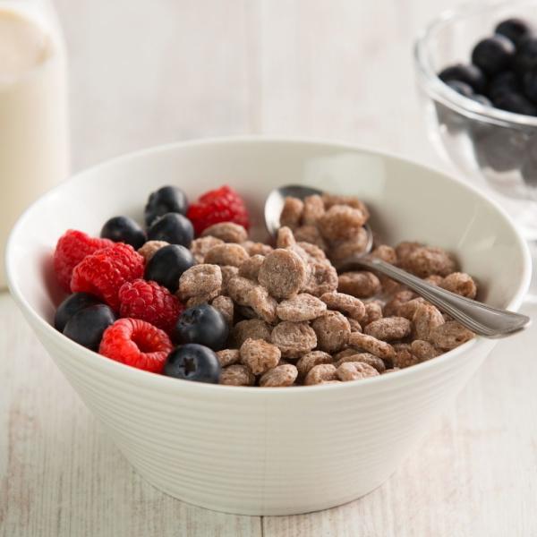 Loprofin cereals with chocolate flavor are crispy breakfast cereals for nutrition as part of a protein-reduced diet for PKU, MSUD or similar diseases of the protein metabolism. These low-protein cereals are the ultimate in crunchy fun for all chocolate lovers. They can be ideally prepared with fresh fruit and PKU milk, but are also perfect as a snack between meals.