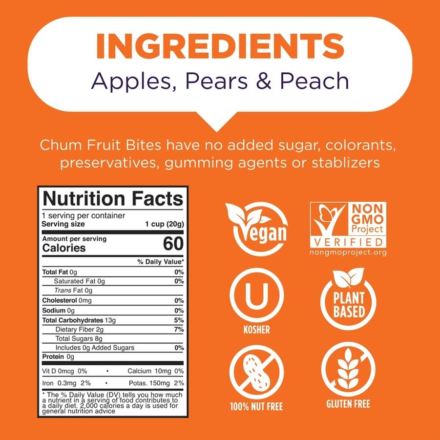 Chum Fruit Bites Peach 100% Real Fruit Snacks, No Sugar Added- .7oz