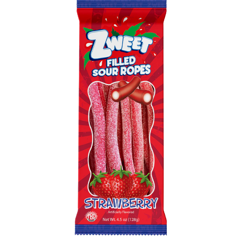Sour Strawberry Ropes Filled | Zweet | Go-Pack | 4.5 oz