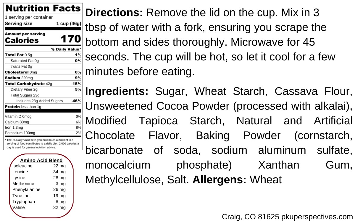 Enjoy warm, chewy low protein fudge brownies in minutes. This easy and delicious treat is microwavable and packed with fiber and 3 essential vitamins.
