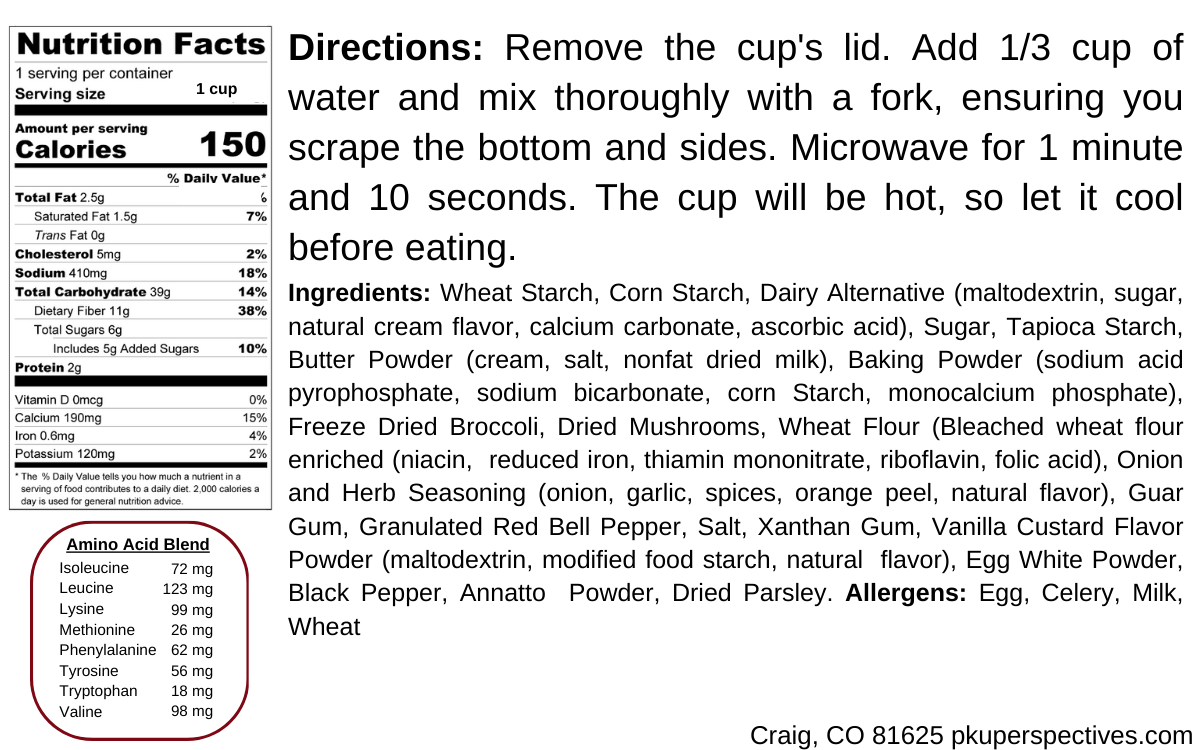 Start your day quickly with our low protein breakfast omelet. It’s fiber fortified and easy to prepare. Just microwave it at work for a healthy meal on-the-go. Serving Size:1 Cup (49g)