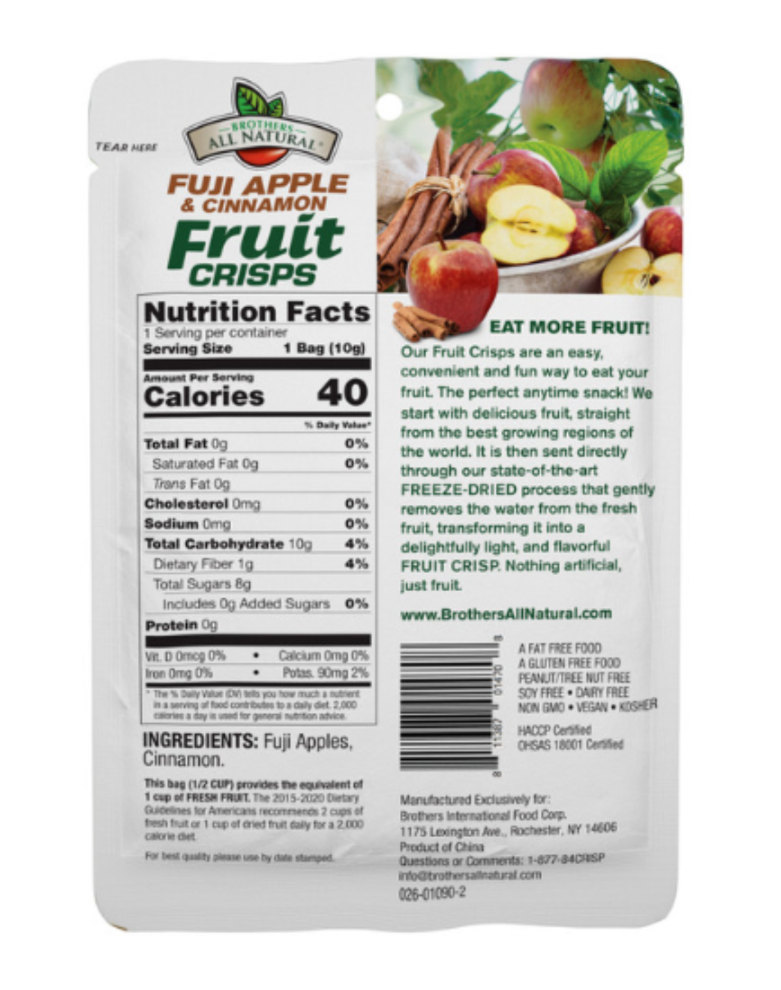 • 100% Fruit: Made with sliced Fuji Apples with a dash of Cinnamon. Contains zero additives, preservatives or artificial coloring.