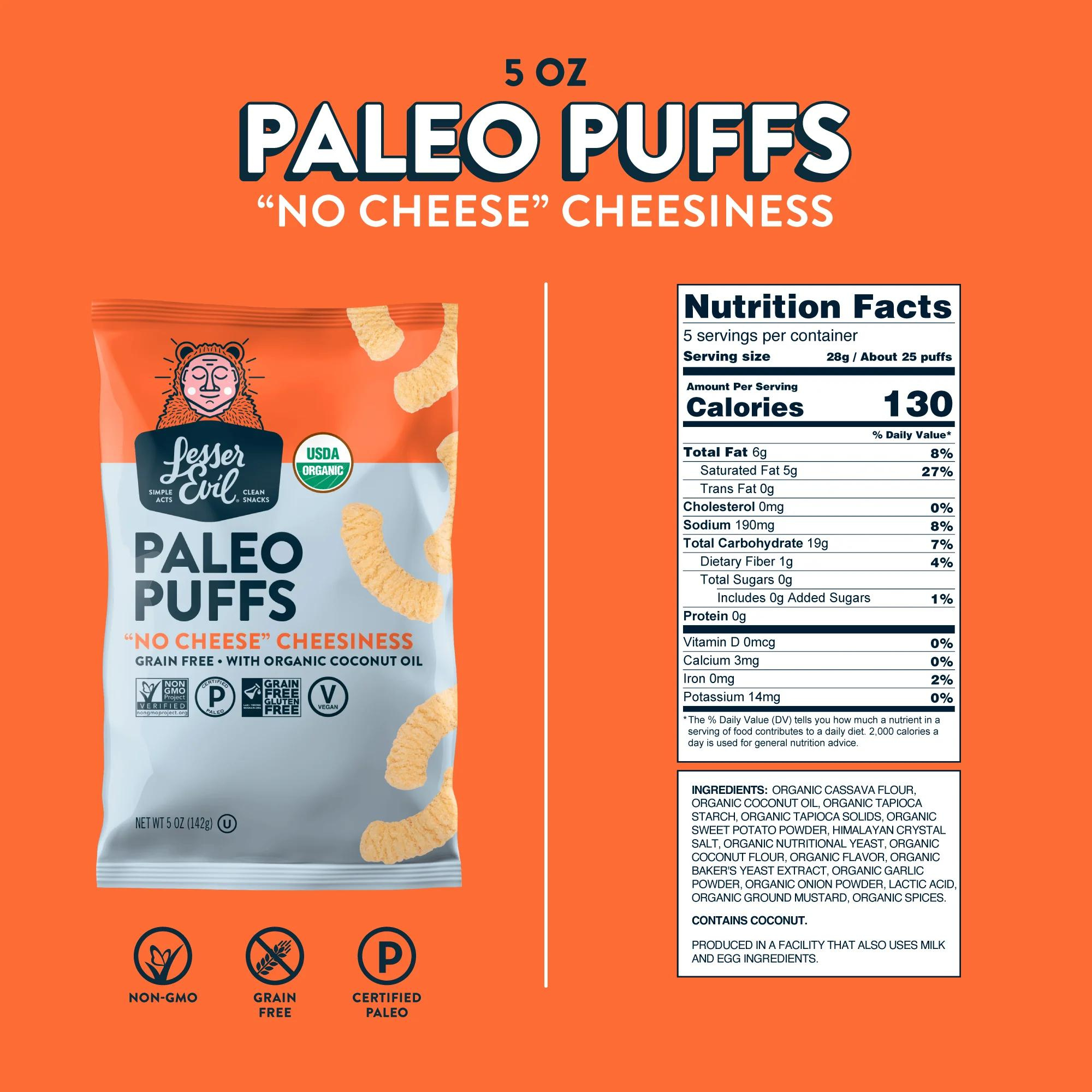 Lesser Evil , “No Cheese” Cheesiness Paleo PUFFs- 5 oz