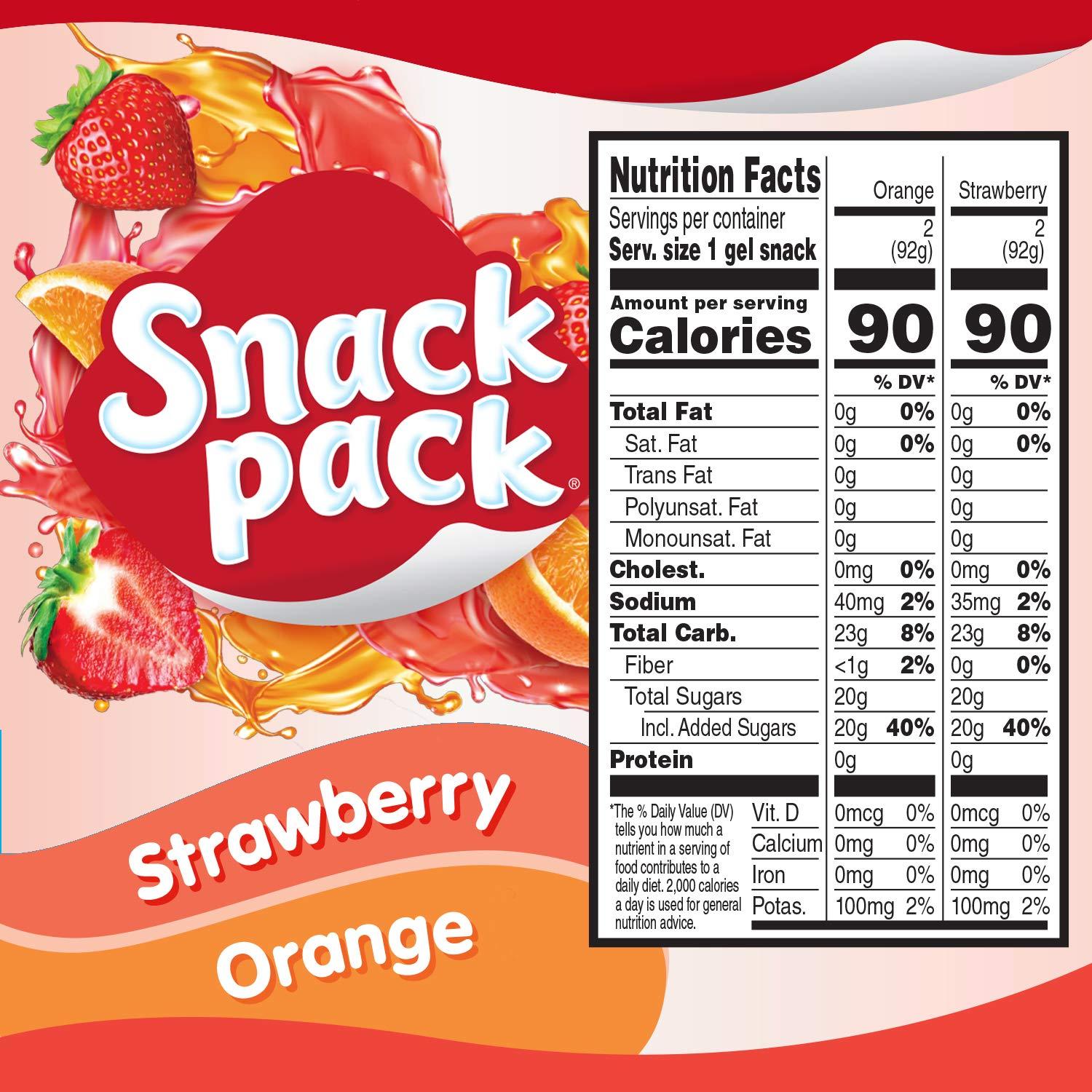 Snack Pack Strawberry and Orange Naturally and Artificially Flavored Juicy Gels are a fun snack or dessert that is delicious any time of the day. This gel snack features classic strawberry and orange flavor for an explosion of fruity flavor. Snack Pack Strawberry and Orange Juicy Gels are so full of flavor, they won’t make you miss the strawberry and orange gelatin cups you’ve had before.