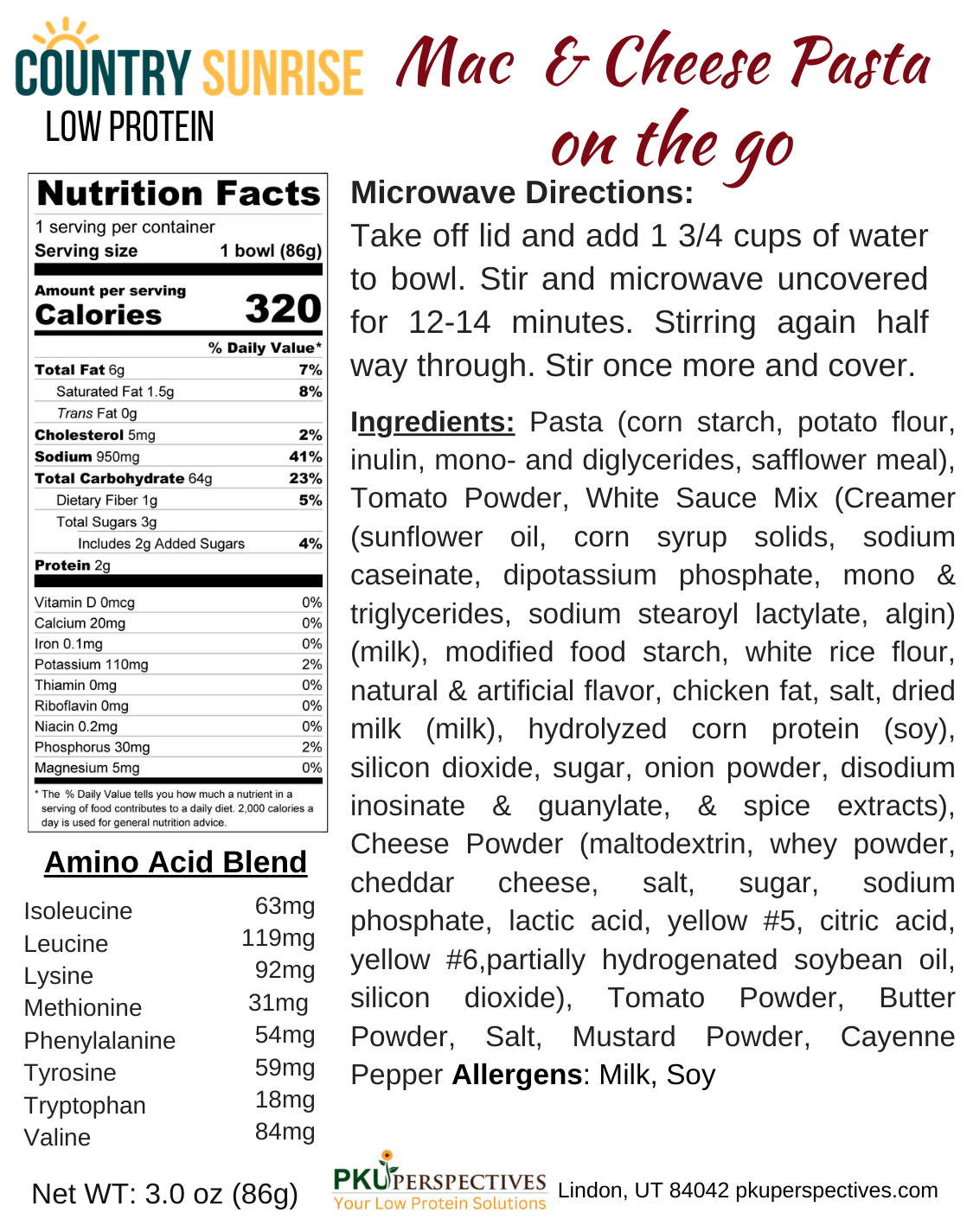 Country Sunrise Mac & Cheese Pasta on the go BOWL- 3oz