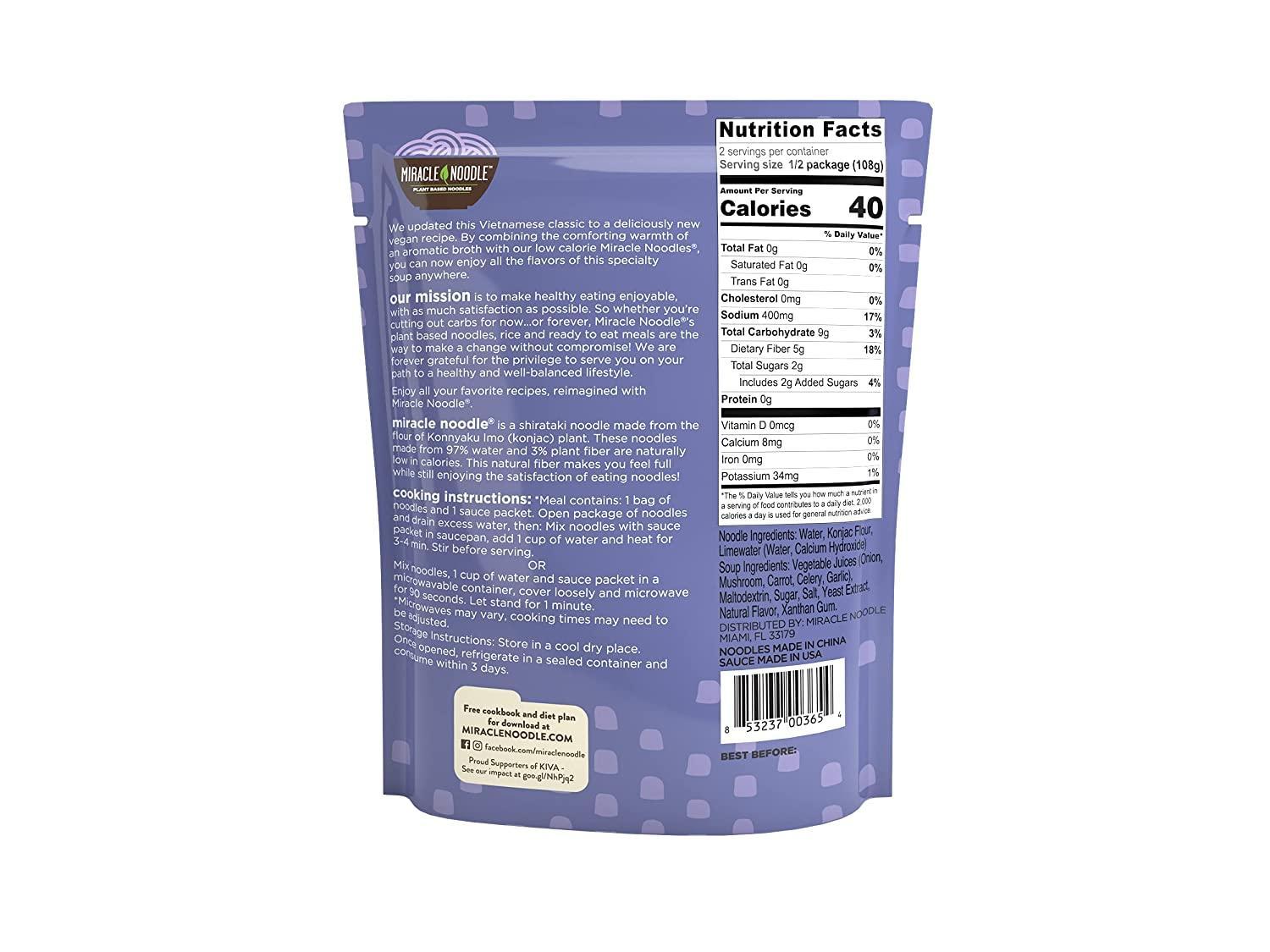 Pho, pronounced fuh, is a flavor-packed, aromatic soup from Vietnam that’s teeming with beneficial nutrients. Traditional pho noodles are made from rice noodles called bánh phở, but ours are made from tasty shirataki noodles that are much lower in fat, sugar, calories and carbs. In fact, Miracle Noodle Pho has just 38 calories per serving, with 0 grams of fat and 9 grams of carbohydrates. So if you’re looking for a healthier alternative to traditional pho, this product is for you!