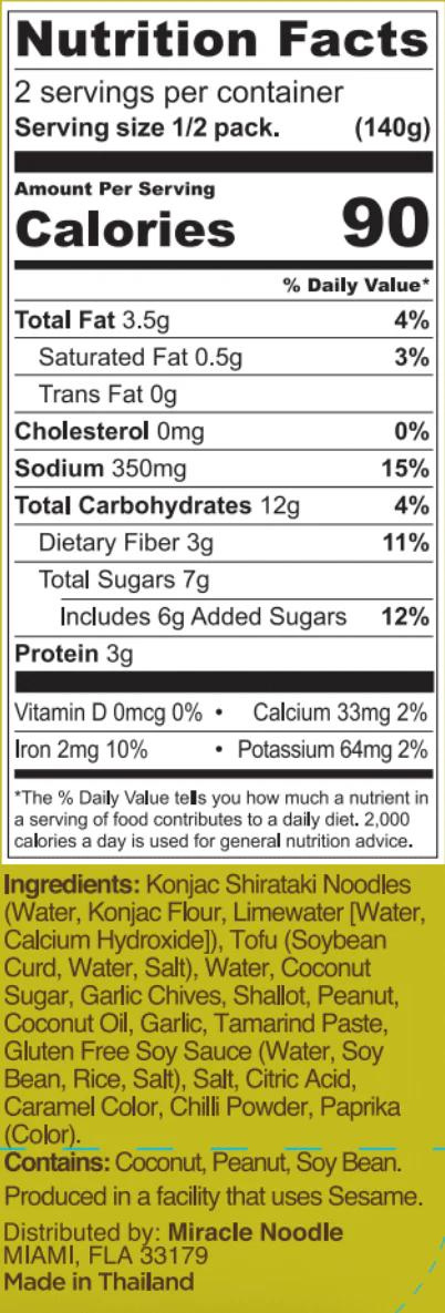 Quick, tasty and convenient, Miracle Noodle Ready-to-Eat Pad Thai helps you meet your health goals without the extra effort. Each package starts with our good-for-you shirataki noodles – tasty, plant-based noodles that are low in carbs, sugar and calories – and is then dressed up with an array of yummy Thai flavors, including peanuts, light soy sauce, garlic and coconut oil. This ready-to-eat pad Thai noodle dish is perfect for any low-carb, gluten-free or vegan routine, and also serves as a good source of fiber.