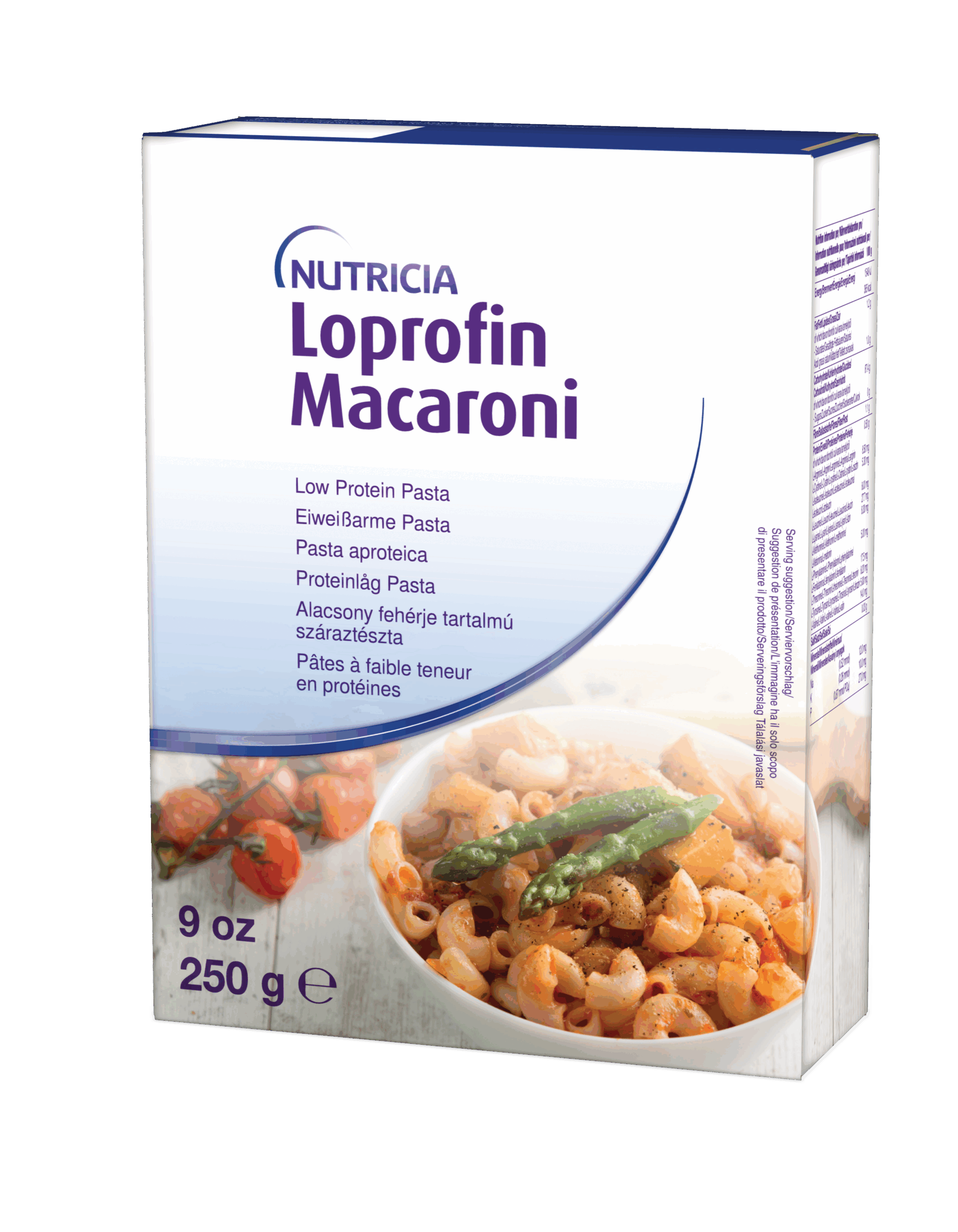 Low protein pasta for your favorite pasta dishes in 9 popular shapes. Gluten-free, Wheat-free, Peanut-free, Milk-free, Egg-free, Soy-free. Protein:0.2g/56g uncooked serving PHE:5.6mg/56g uncooked serving.