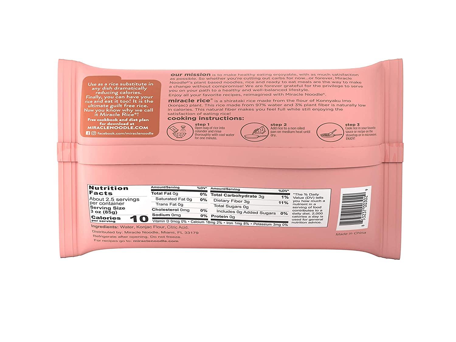 Just because you’re on a low-calorie, low-carb, gluten-free, vegan or low protein diet doesn’t mean you can’t enjoy tasty rice dishes. Our very own Miracle Rice is the perfect base for your healthy, guilt-free stir-fry, rice pilaf and even rice pudding. Our low-calorie rice is different because it’s not made from a typical high-sugar grain. Instead, it’s made of 97 percent water and 3 percent fiber derived from the Japanese konjac plant. That means it’s safe for people with challenging dietary restrictions.