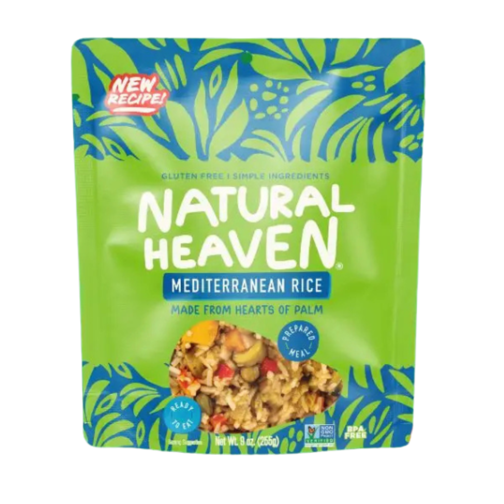 Natural Heaven Hearts of Palm Mediterranean Rice is a delicious and healthy alternative to traditional prepared rice meals and… it is ready to eat! Whether you’re simply looking to eat healthier or following a specific diet (low carb, keto, paleo, vegan…), it is the perfect choice! Made from just simple ingredients, it creates the perfect low-carb, rich in fiber rice option! Enjoy the prepared meals experience guilt-free! Each pack contains about 2.5 servings, making it an ideal choice for meal planning. Super simple to make! ✔ Tear and microwave for 1 min! ✔ Heat up in the stove for 4 min!