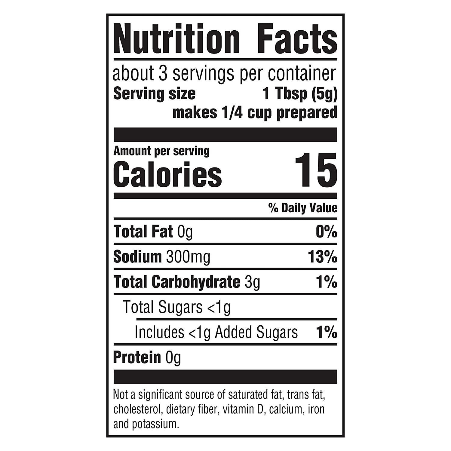 Protein:0g PHE: 5mg/1TBSP (5grams) prepared mix, makes 1/4 cup prepared (3 servings/bag)