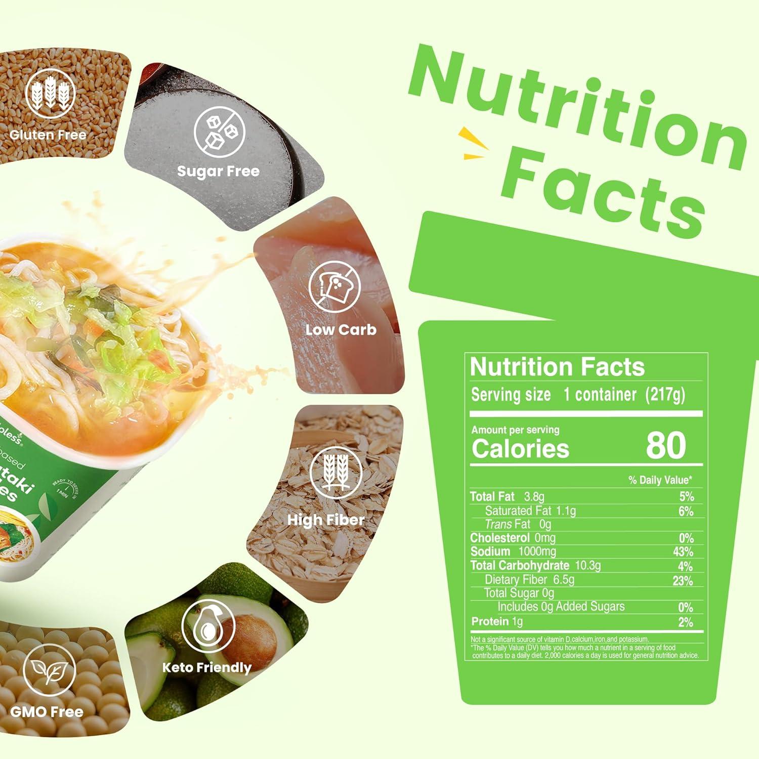 Low Calorie Konjac Pasta Noodles, Low Carbs Chicken Flavored Noodles Soup, Healthy Noodle Keto & Paleo Friendly, Gluten Free, Vegan